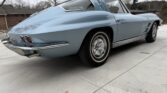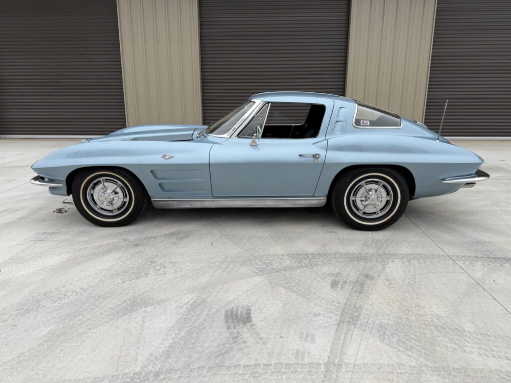 Finished in Silver Blue over dark blue vinyl, this iconic C2 is powered by a 327ci V8 with a 4-speed manual. NCRS Top Flight award winner, featuring knock-off wheels, Positraction, concealed headlights, and AM/FM radio. Restored in 2011, owned since 2012, and offered with NCRS docs, shop manual,